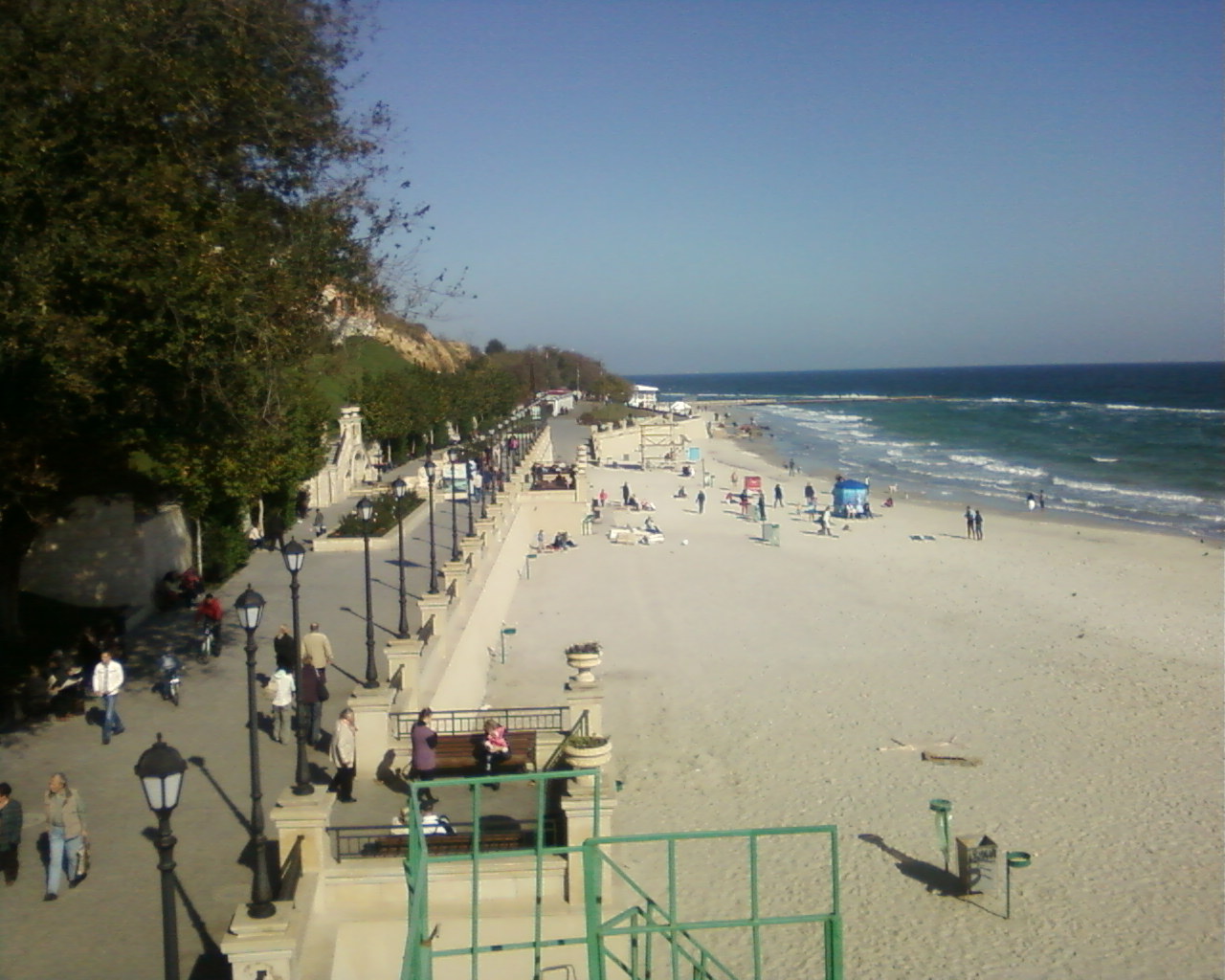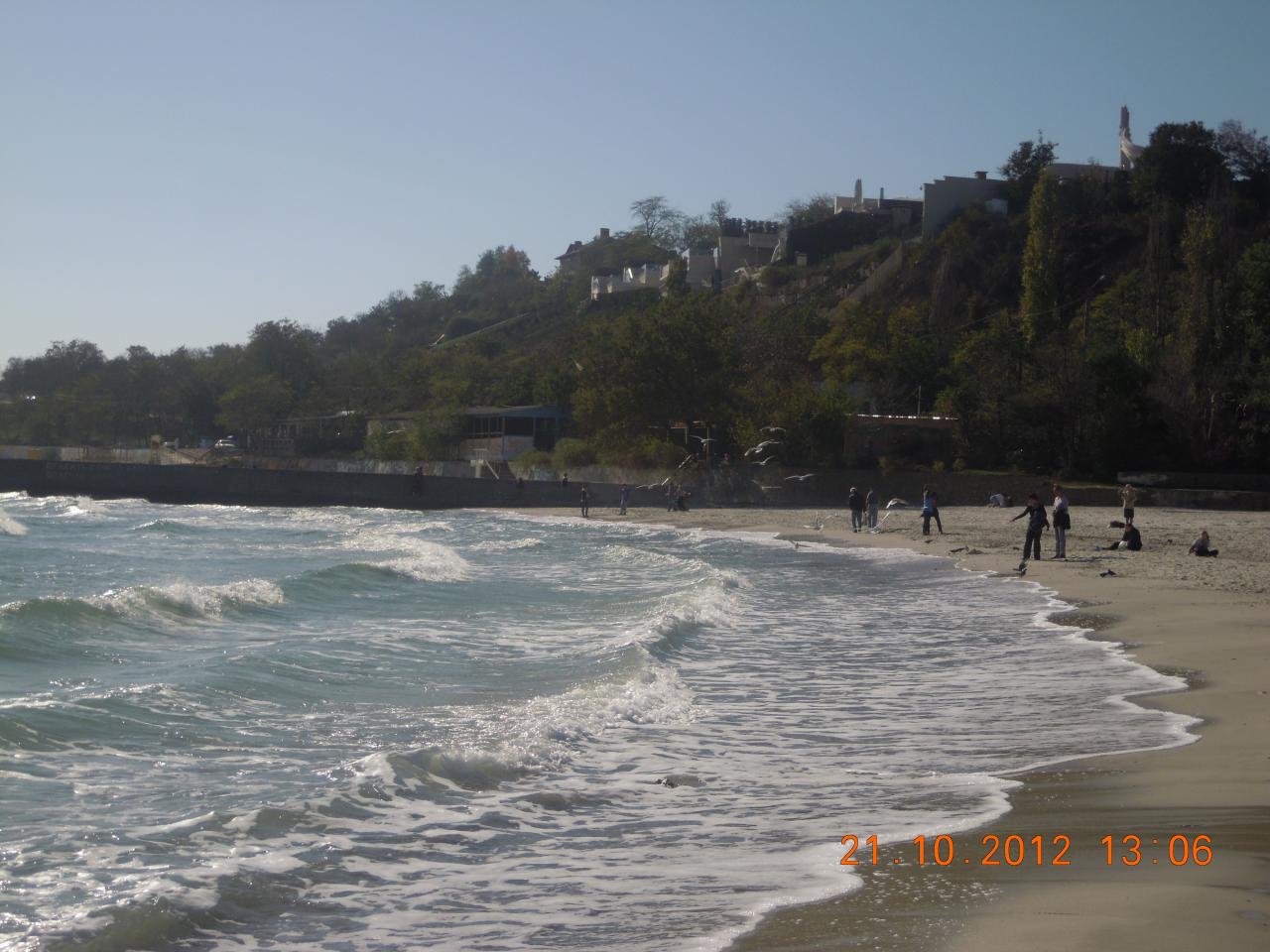 10 ст.БФ,пляж Чайка.Гуляющих много,загорающих-единицы,купающихся не обнаружил.Ветер,однако.