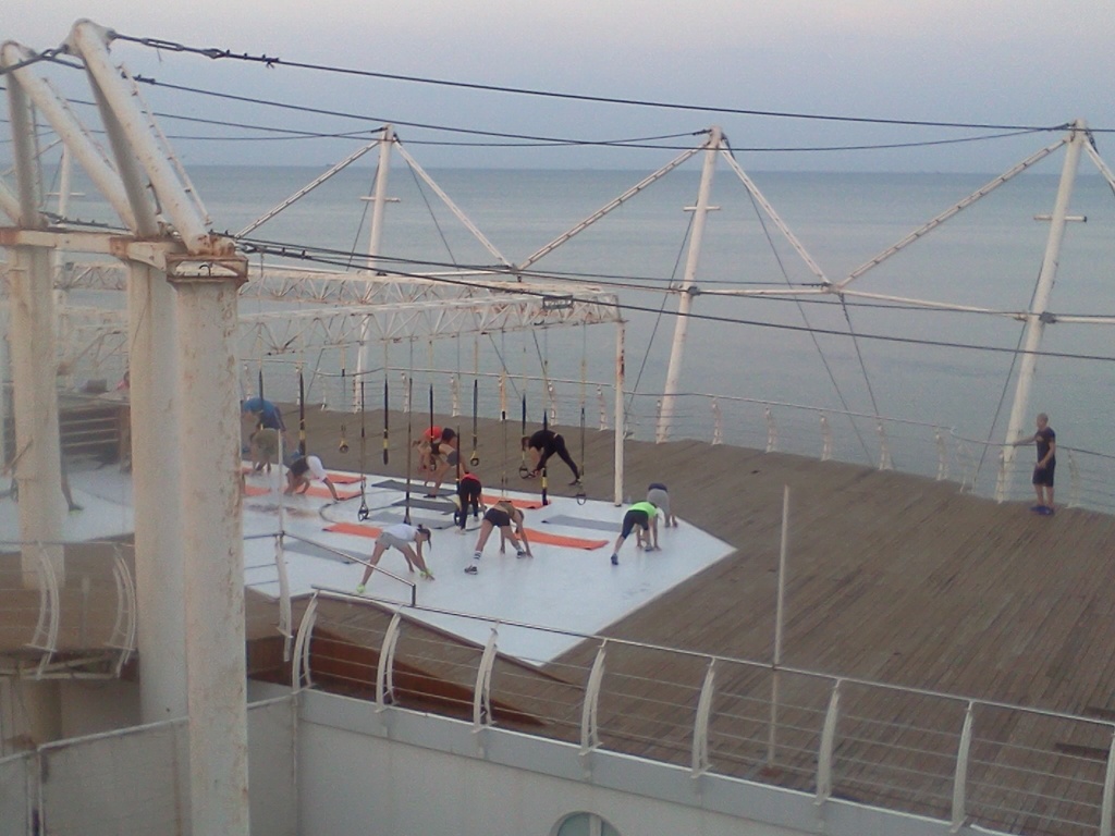 В это время в Аркадии на фоне моря активно занимаются физкультурой