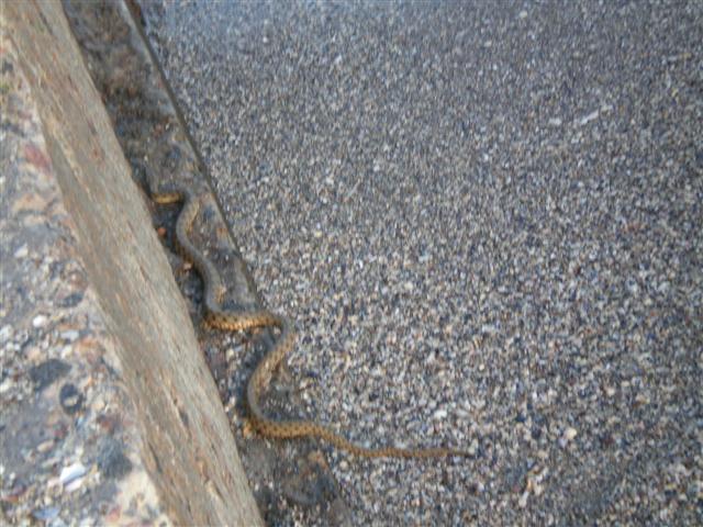 А мы вчера на пляже на 15 ст. Б.Фонтана видели вот такую змеюку. Она плавала у берега, потом забралась на пирс...