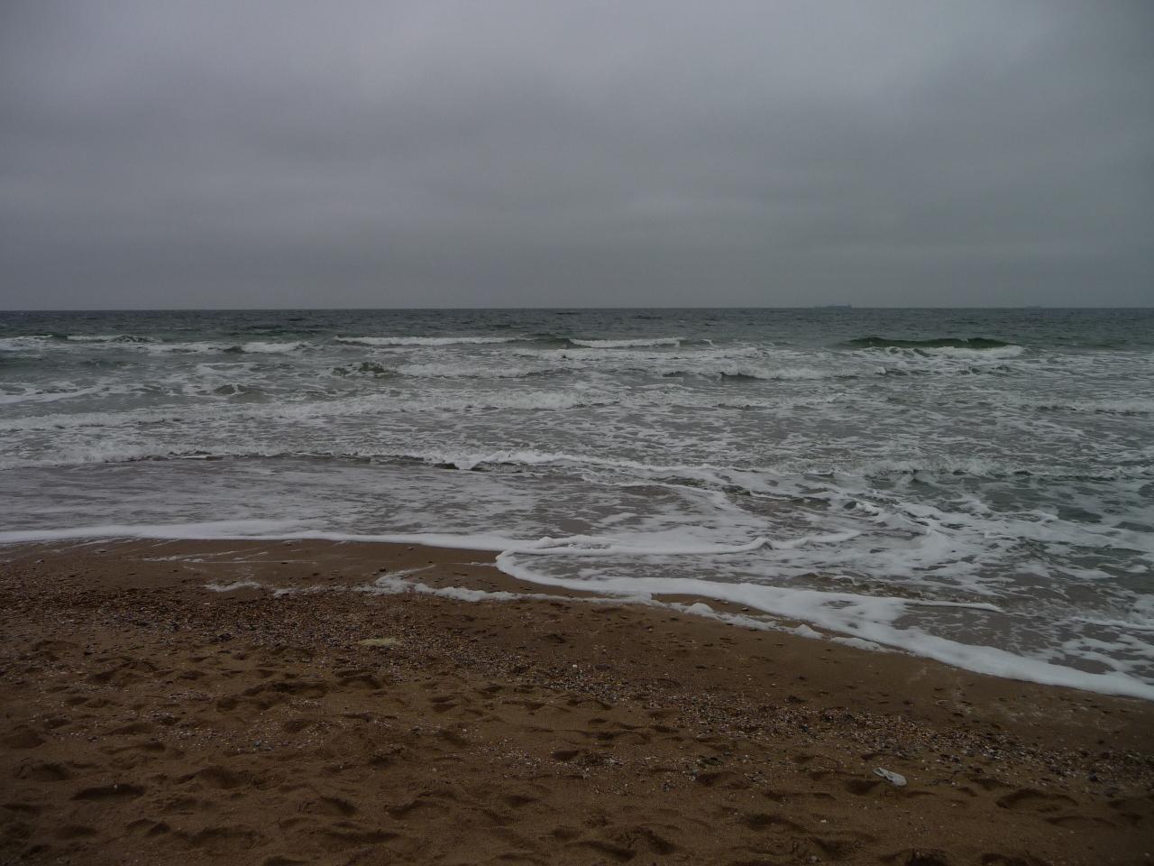 Дельфин, 12-00, слегка штормило, высокая влажность, зябко. Вода +5°С, волны нагнали много желтовато-грязной пены. Но после купания - как всегда хорошо и совсем не холодно. Прошелся от Дельфина до Старика по песку босиком, когда стал обуваться - был неприятно удивлен количеством разноцветного собачьего дерьма, прилипшего к ногам. Песок сейчас холодный и ноги не совсем хорошо чувствуют, во что они вступают. Пришлось повторно принимать водные процедуры...К слову, когда смотришь картинку вэб-камеры из ресторана "Утесов", особенно по утрам, видно, что много народу прогуливается с собаками. Я то думал, что собачки по дороге на море успевают облегчиться по пути... Ан - нет...