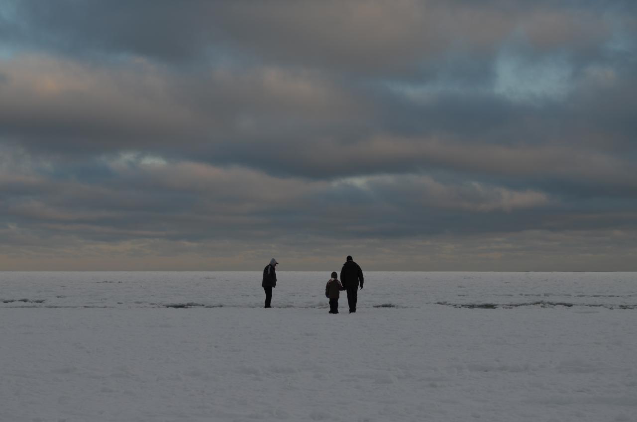 Пешком по морю.....да еще и с детьми ...да еще и далеко.... Друзья, у нас не Тюмень, лед из за волн не крепкий, включайте иногда то, что заключено в черепной коробке....