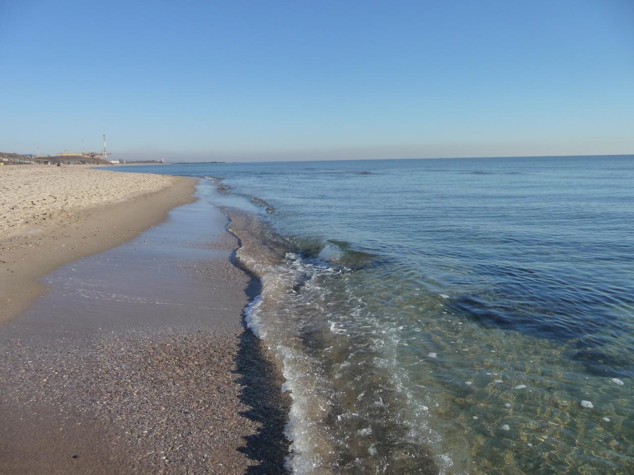 Кабельный, 8.00. Ясно, ветра почти нет, море абсолютно спокойное. Воздух 5, вода 0