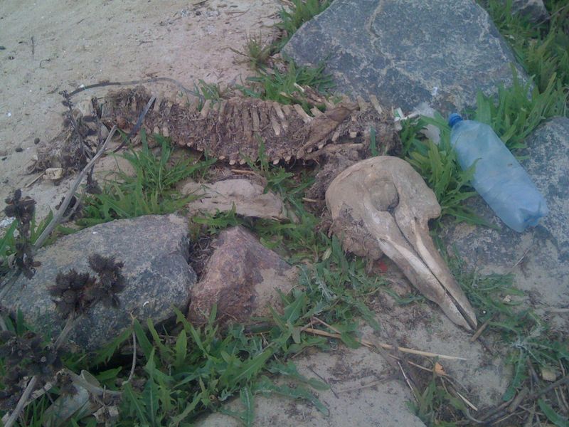 Из найденных интересностей - скелет какого-то птеродактиля. Скорее всего это кто-то из морских млекопитающих, типа дельфина. Но могу и ошибаться, т.к. у наших дельфинов носик маленький, а здесь такой клюв! Собака наша, дрянь такая, втихаря от души вывозилась в этих ископаемых останках и теперь воняет на всю улицу.