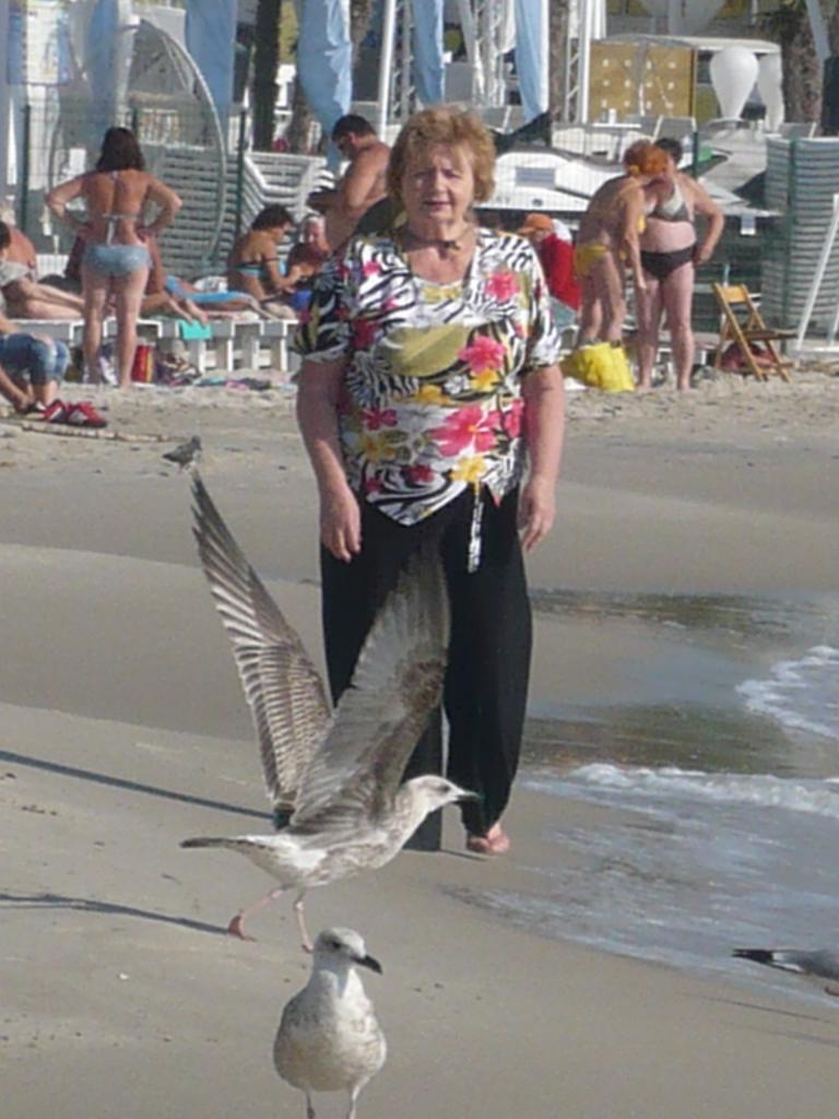 Море теплое, сначала с песком, а зайдешь по пояс - уже приятно окунуться. Поплавать не получается, волна за волной, не поймаешь - приходится ловить потом в море свою шляпку