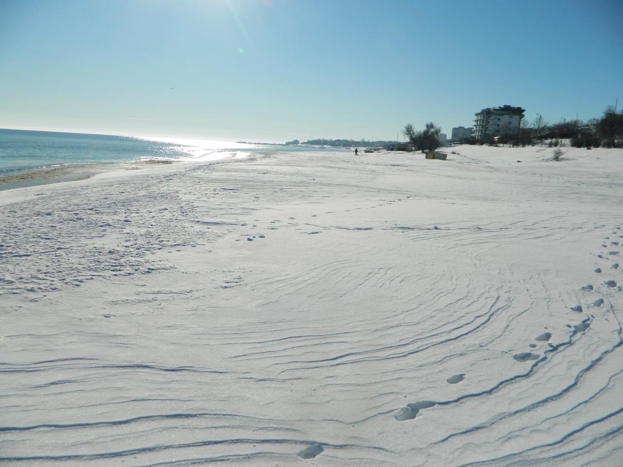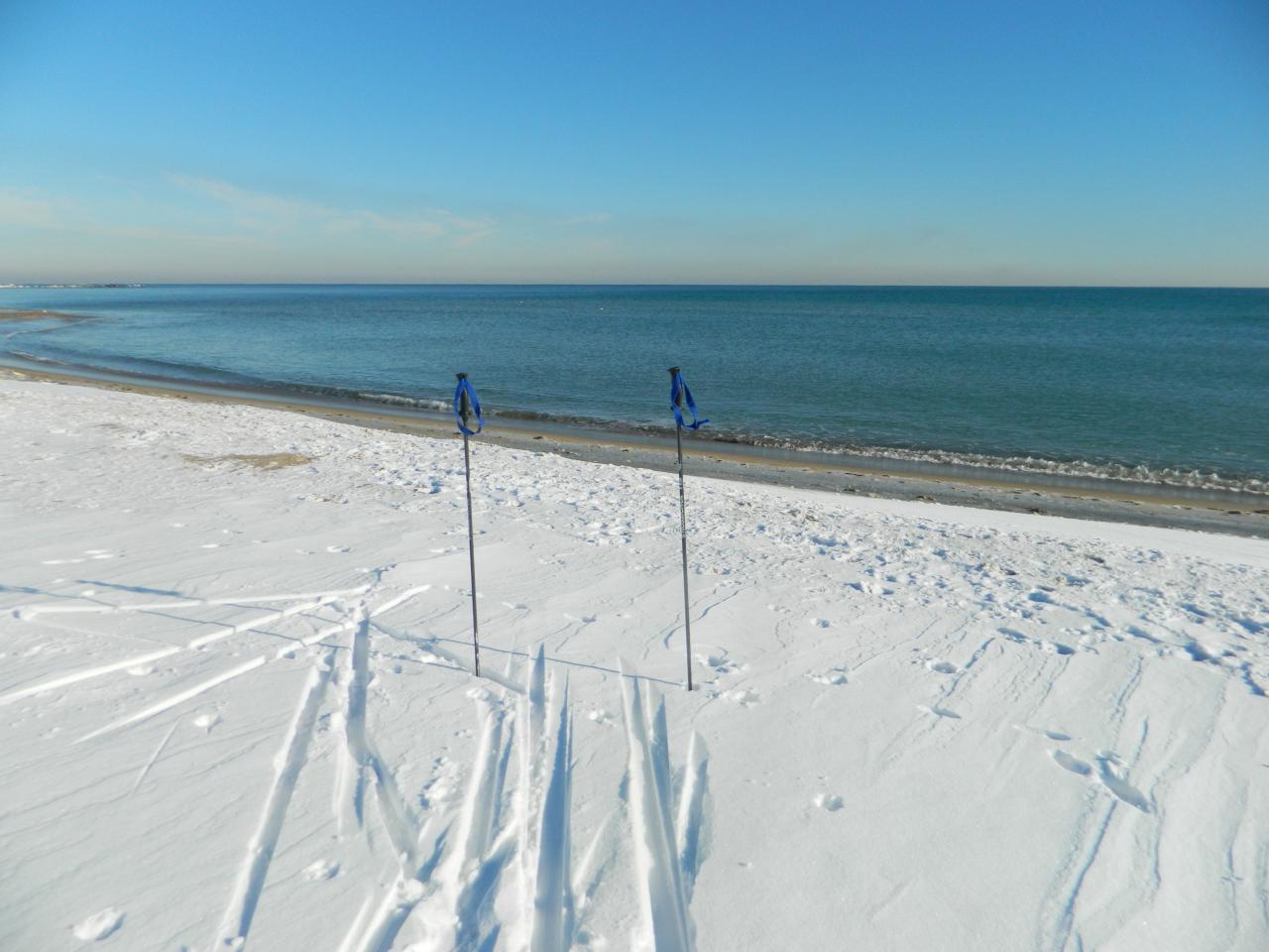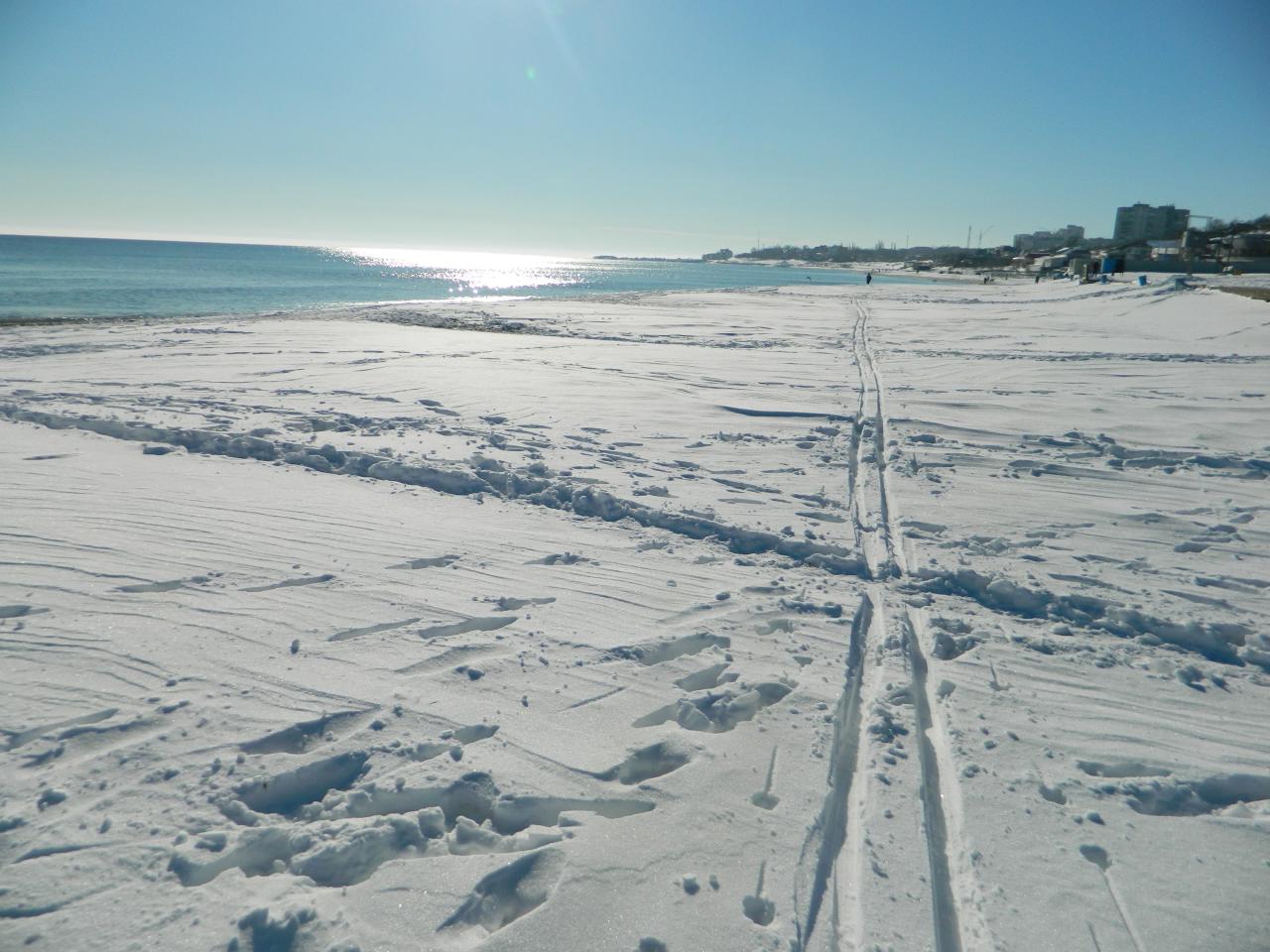 Вот такое море было вчера. Был у меня бзик-пробежаться по пляжу на лыжах. Но при всех предыдущих снегопадах такого не было, снег или сдувало с пляжа, или он был перемешан с песком. А вот вчера набегалась. День и море были чудесными!