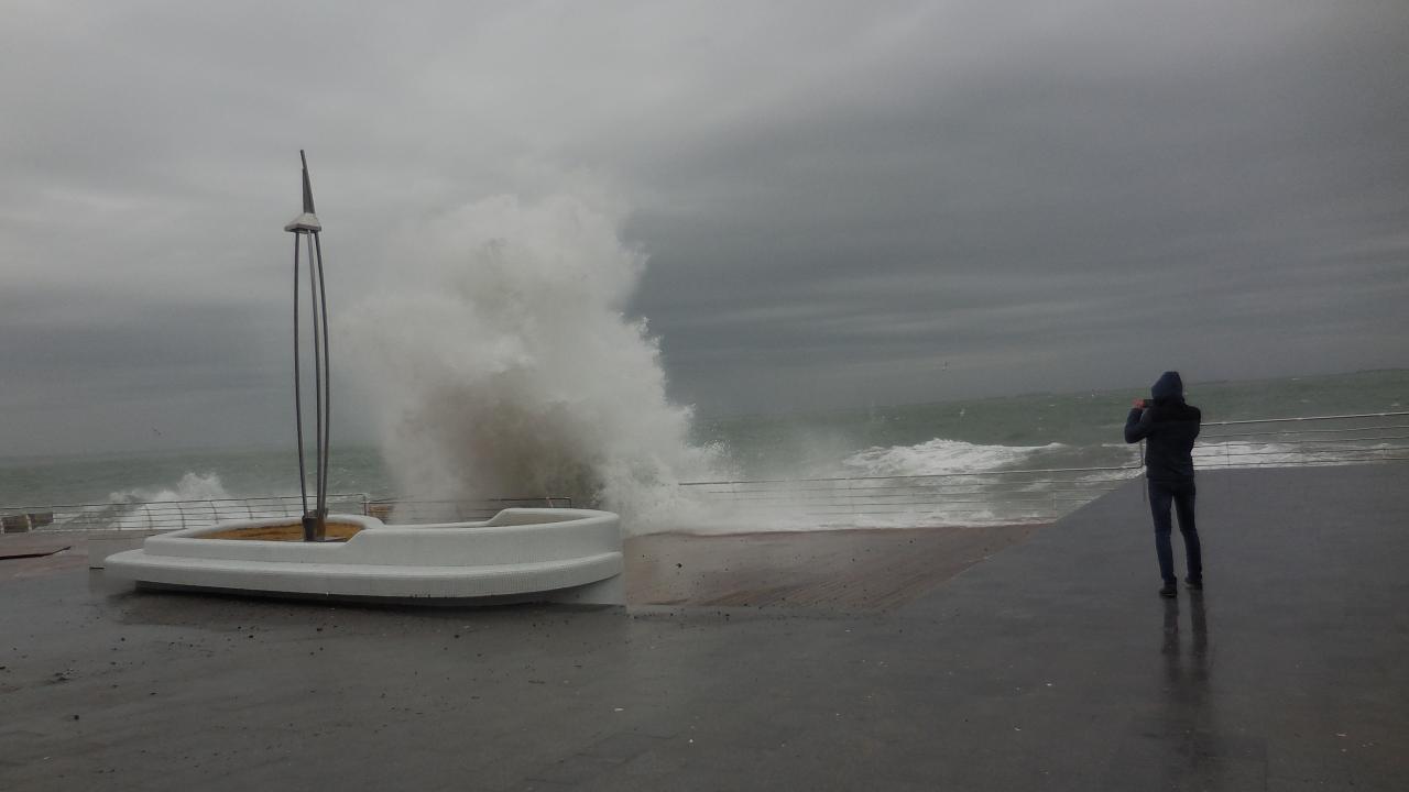 16 ст. Вчерашний шторм заметно утих,а у спасательной станции под защитой пирса можно спокойно поплавать. Но вода грязная, плавают какие то подозрительные лохмотья. Такое ощущение, что зимой под шумок в море сбрасывают все подряд не стесняясь...