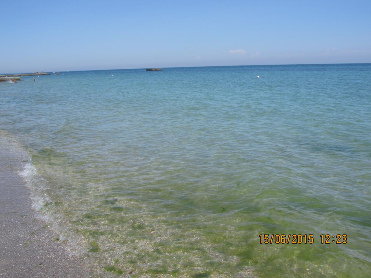 Только что с Молодой Гвардии. У берега настоящий зелёный борщ. По виду и температуре соответствует Яиц только рубленых не хватает, а так рестораны на побережье могут сэкономить Дальше вода чище и прохладнее, прозрачная даже. Ветер с моря сильный, холодно.