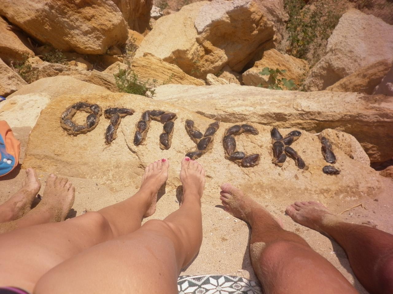 Вапнярка, дикие пляжи. Первый день отпуска. Средний прибой, вода теплая, у берега мутная, за полосой прибоя чистая. Водоросли и медузы единичны. Людей в меру, друг другу не мешают.