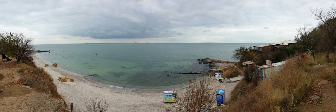 Кабельный, 7.30. Пасмурно, над морем дымка, ветра почти нет, на море легкая зыбь. Воздух 7, вода 11, ну очень мутная.