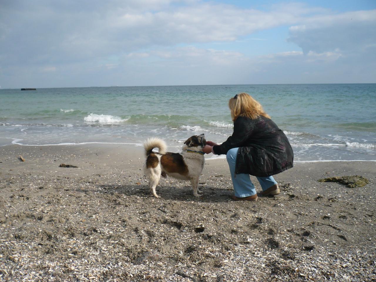 А мы сегодня солнце на море почти и не застали - набежали устрашающего вида тучи и пришлось ретироваться(( Зато мне пес в патриотическом ошейнике принес свой драгоценный мячик Он , кстати , вполне активно купался. В полном одиночестве.