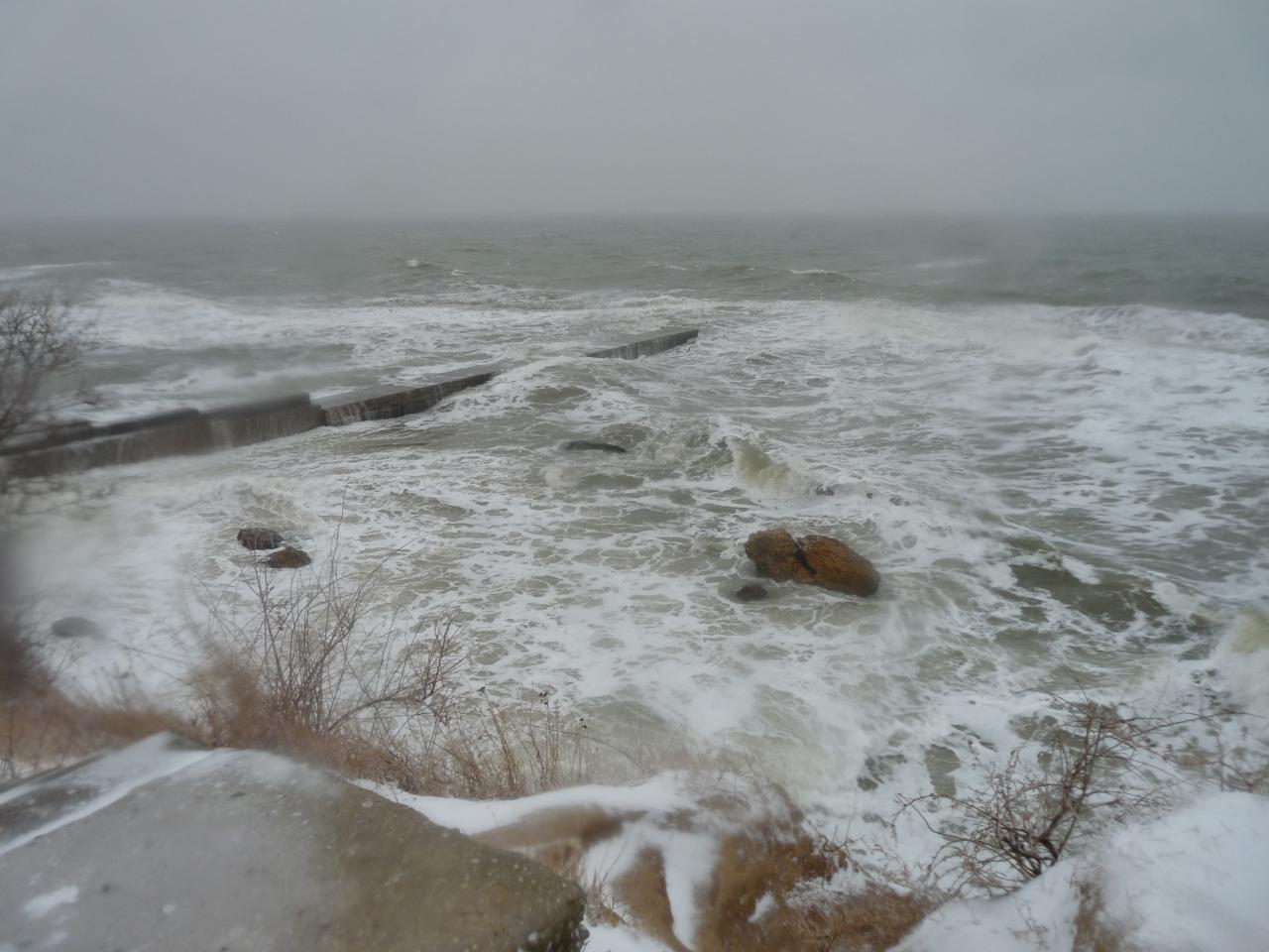 Таки да лютые морозы отступили, своим буйством морюшко прогнало их. Приехал утром -2 уезжал чистый ноль. Моречко возмутилось не на шутку, не захотело быть закованным в лёд. Часть пляжей и большинство пирсов оказались под водой, волны перешагивали их, не замечая, в некоторых местах брызги долетали до пешеходных дорожек, не минула и меня эта участь, и машину морюшко тоже отметило