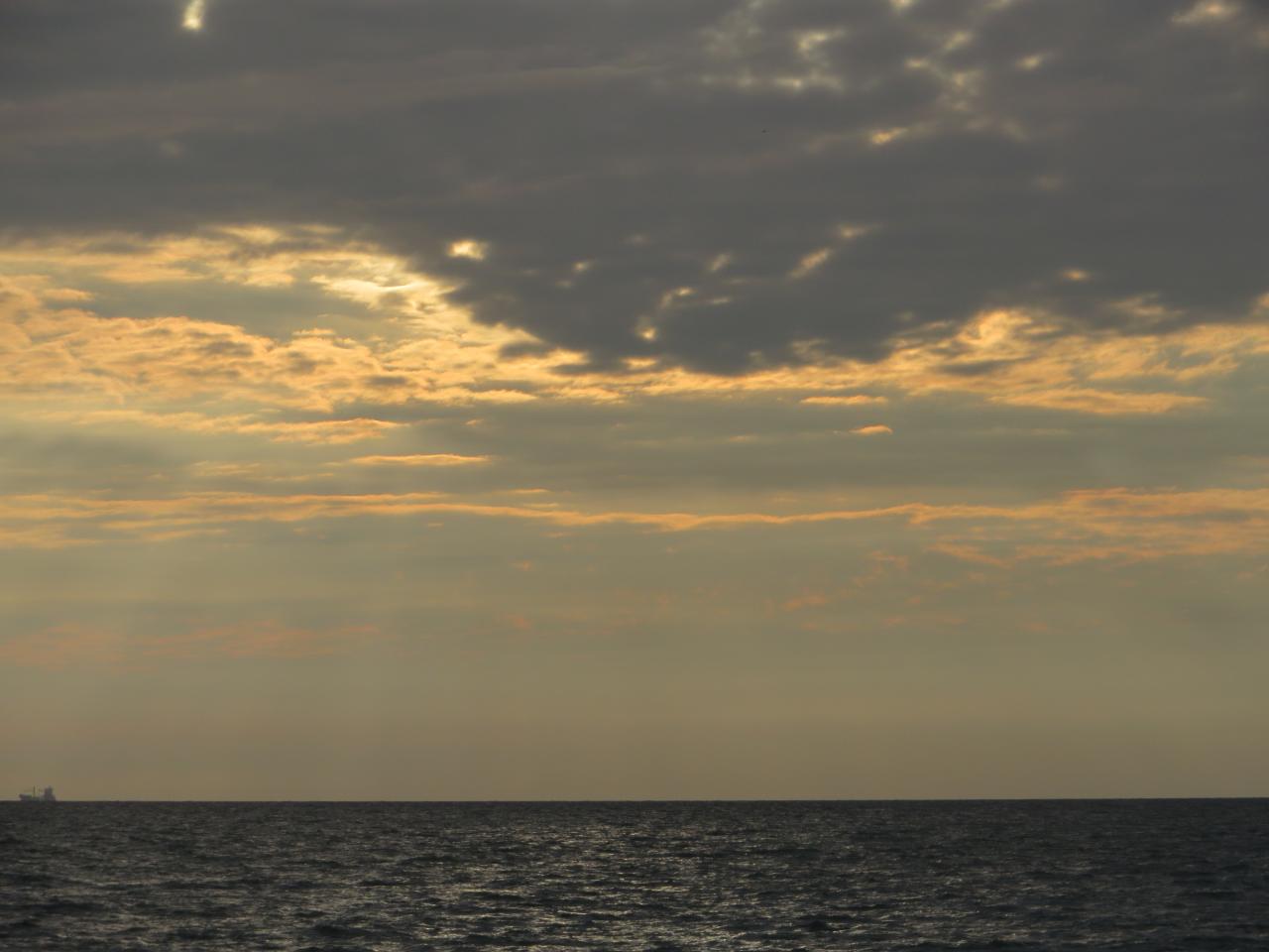 Необычный день сегодня. С Аркадии - Гагарин-плаза и Арарат открылся чудный вид на море. Солнце было закрыто тучками, но вдали ярко светило отражение в разрыве облаков далеко над морем. На камеру снял, но мыльница, и столь яркого контраста не вышло передать.