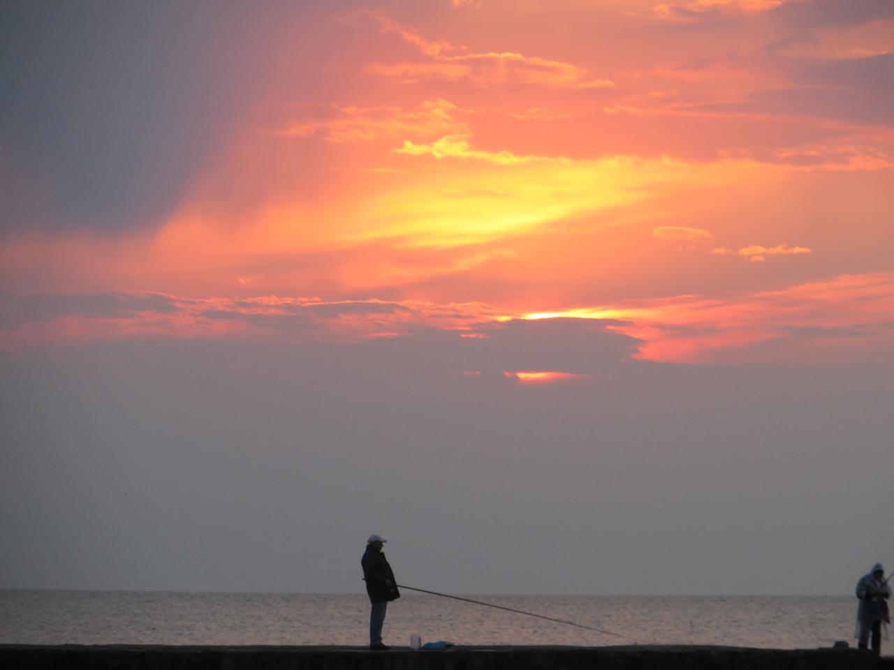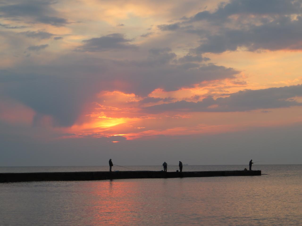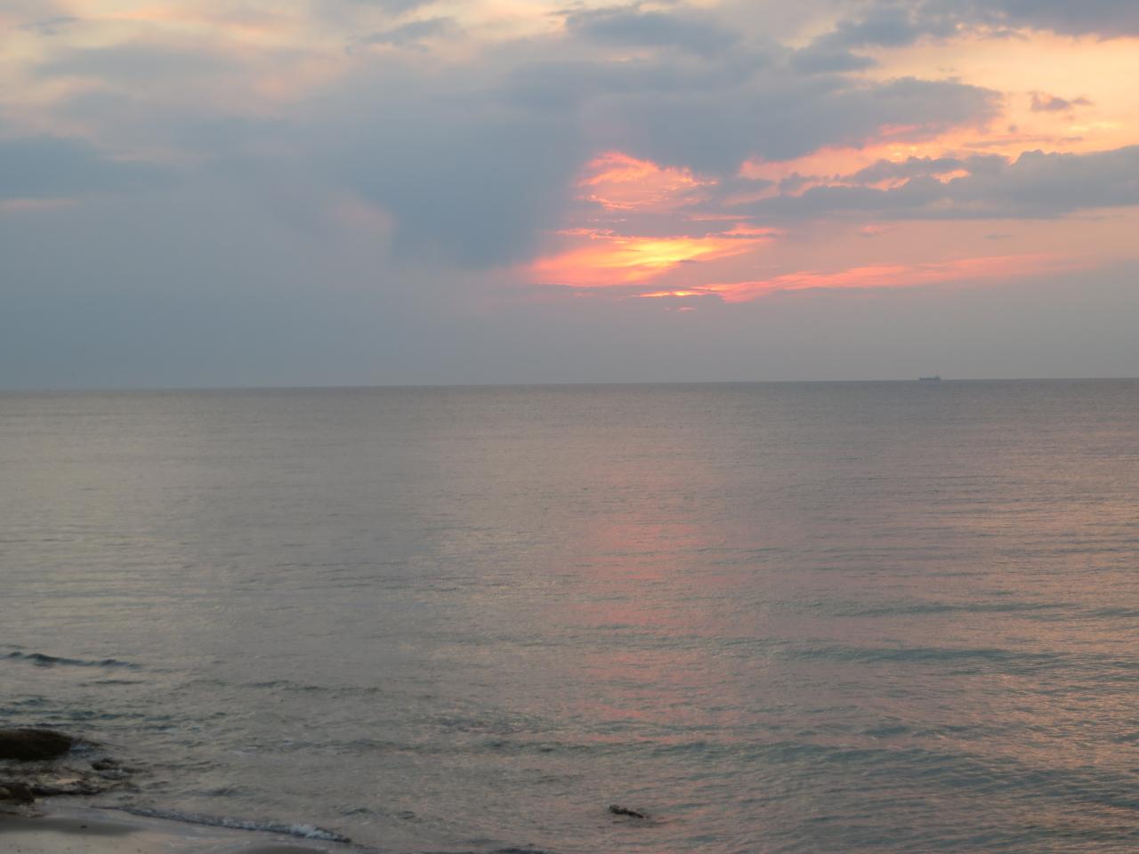 Кабельный, 8.00. Малооблачно, не сильный северный ветер, море абсолютно спокойное, вода полупрозрачная. Воздух 15, вода 14.