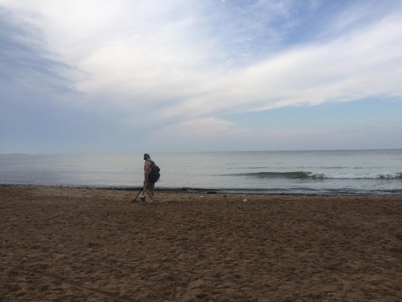 Море не спокойное, волны, вода мутная, грязная, коричневая - смывает всё то болото,