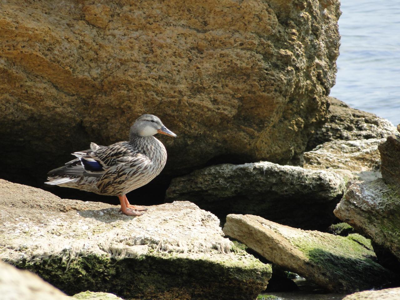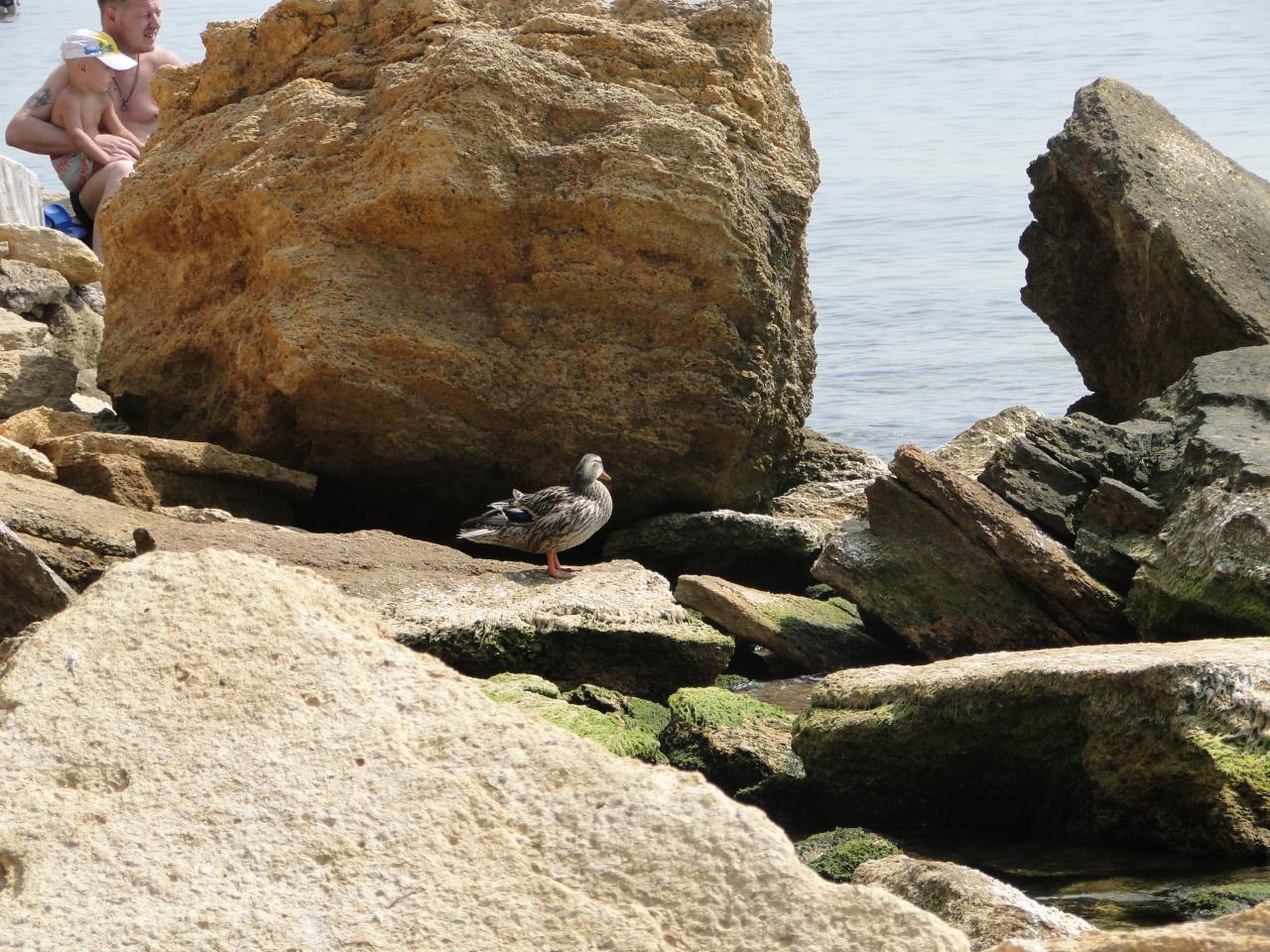 На нудистском участке проживает селезень, прибился к чайкам))
