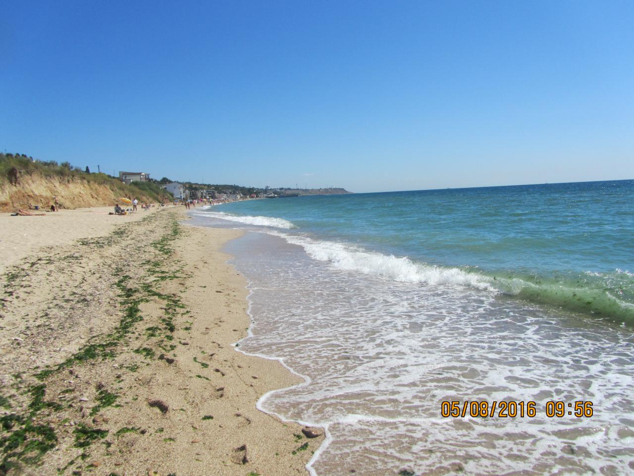 Санаторий Россия. Немного водорослей с одной стороны пляжа. А так вода чуть мутнее чем вчера, но за волнорезом прозрачая и красивая. На море оочень хорошо, солнце уже не так жарит, вода очень теплая.. просто идеально