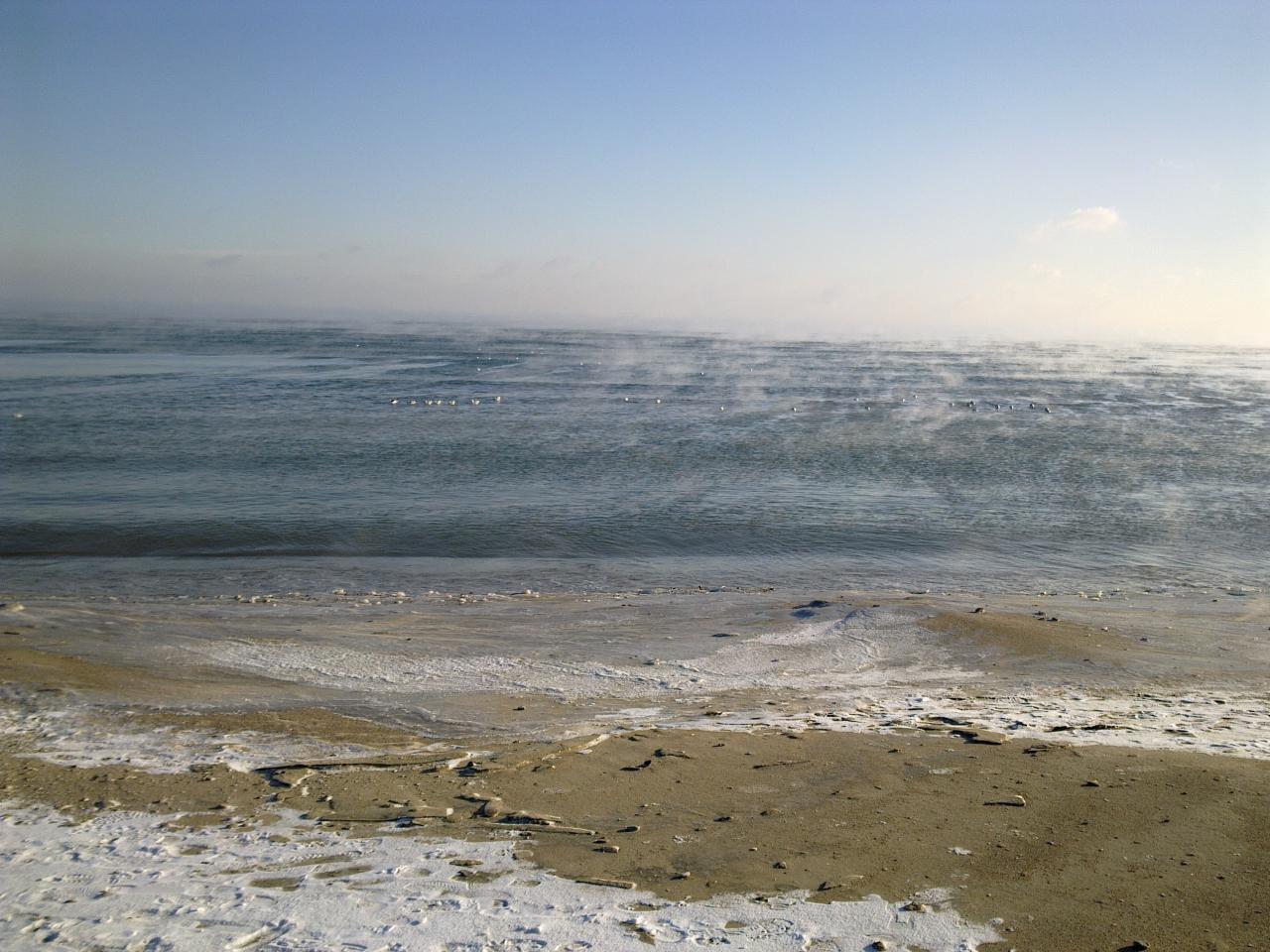 начиталась форума и побежала на море - получать море удовольствия море совсем не замерзшее и "парит", что добавляет картине особой фееричности. Одним словом-красота