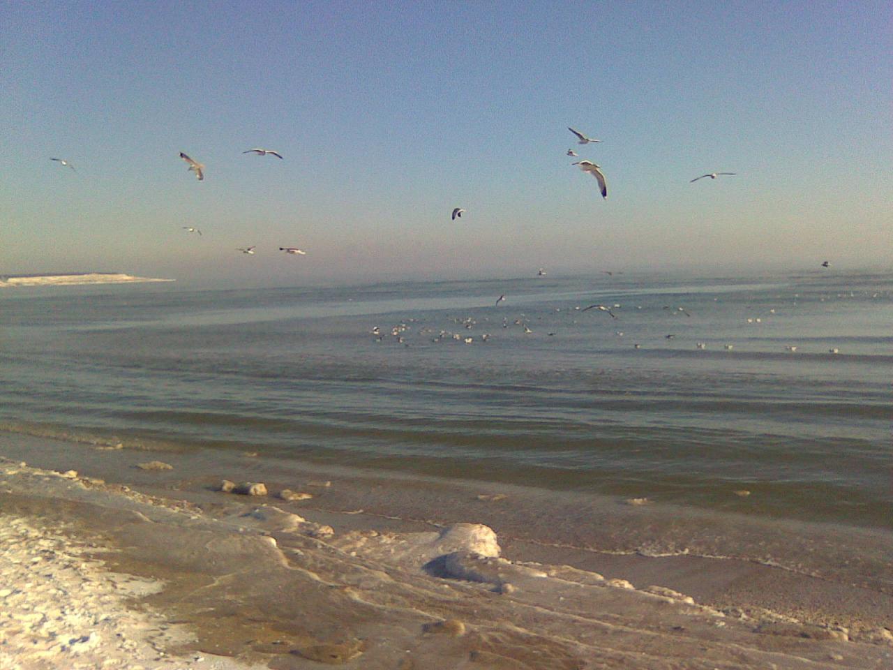 Были сегодня на море.Выходить из дома в такой холод страшно,но только вначале,зато потом-море удовольствия!И не так холодно оказалось,спасибо солнышку.Кстати,на море было довольно много людей,даже с маленькими детками.Но чтобы увидеть такую красоту,стоило вылезти из под одеяла!И узнать,что бывает скользкий песок.Нет-нет,не лёд на песке,а именно когда становишься на песок,а он скользит,т.к. под верхним слоем идёт слой обледеневших песчинок.Так что,берите к экрану компа чашки с тёплым чаем-кофе и любуйтесь на здоровье нашим морем!