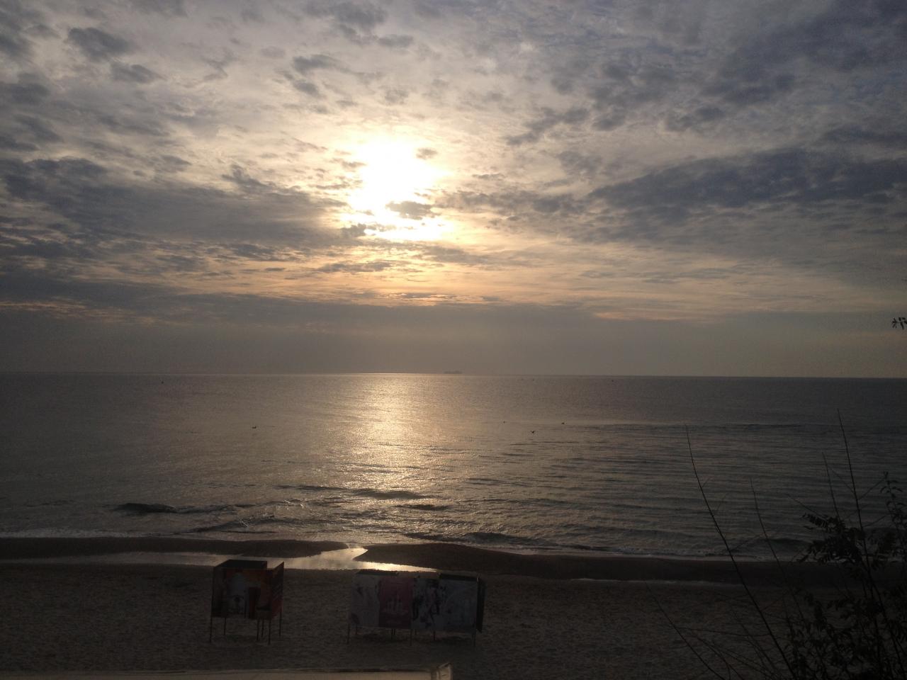 Пляж Алоха. 13 ст. Время - с 10:30 до 12:00 Море сегодня волшебное. Не было чем измерить температуру, но в сравнении с воскресеньем - чуть похолодала. Да и на улице стало холоднее в сравнении с выходными. Зайти в воду становится холодновато, но потом быстро привыкаешь к температуре воды и получаешь несравнимое с летним морем удовольствие. море чистенькое, совсем не большие волны у самого берега. Кроме меня никто не плавал.Да и вообще очень мало людей. НО спасатель был!)) Прогулялись с ребенком с 11 ст до 13 и никого не видели купающемся. Люди в теплых куртках гуляют, собачки встречают своих друзей и бесяться на пляжах) Рабочие разбирают летние площадки. Красота!!!