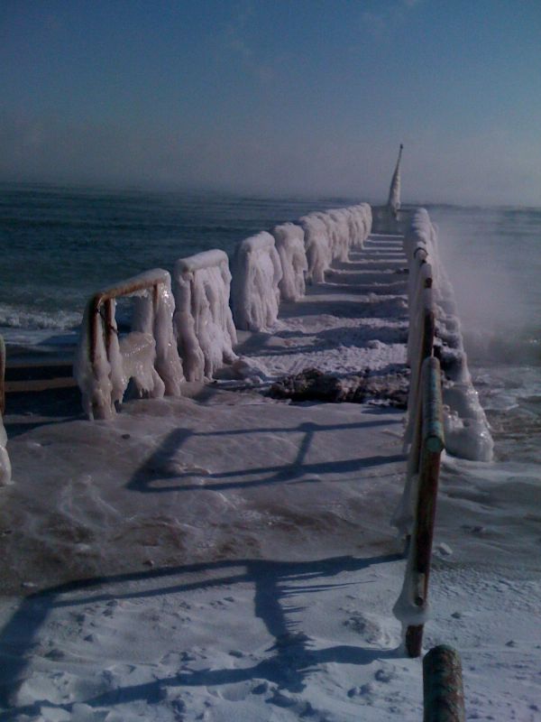 на море волны... когда идет волна - ощущение, что море живое... с каждой волной раздается поскрипывание снега\ледяной крошки возле пирсовпросто завораживает