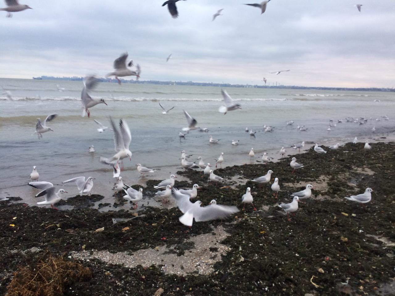 ...вчера ходила на море: кормить чаек и кошек. Думала, насобирать морских смаколыкив, вброшенных на берег штормом, а фиг вам! Увидела рапану в кромке прибоя, море отступило...как мне казалось, я, как голодная чайка, бросилась к заветной ракухе...ну, что вам сказать? рапану смыло обратно у меня под носом, вода резко поднялась до голенища моих резиновых сапог, одно хорошо: я не знала, что я умею так высоко прыгать и так быстро бегать в свои 42 с половиной...
