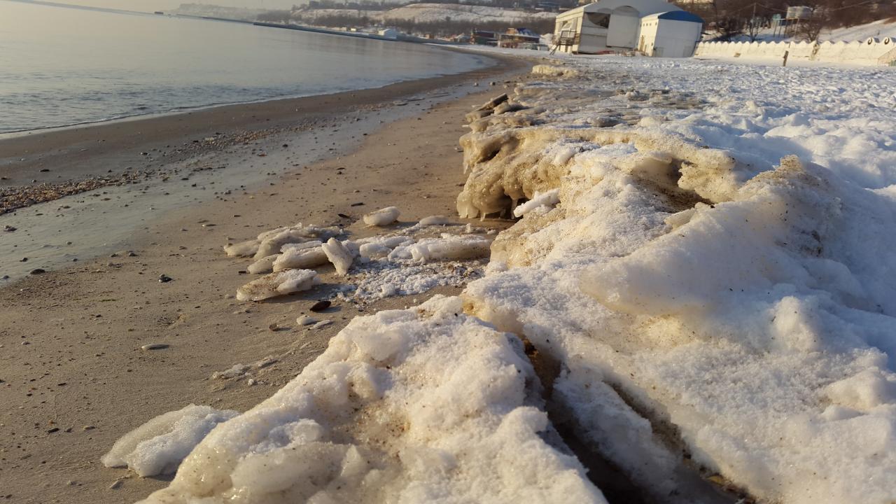 Я в выходные дни отдыхаю от компьютера, а он от меня))) За многолетние наблюдения заметил, что само по себе море у нас никогда не замерзает. Замерзают льдины, пригнанные с рек и лиманов. Чтобы море замерзло, должны быть очень низкие температуры на протяжении пару недель! "ИМХО"))