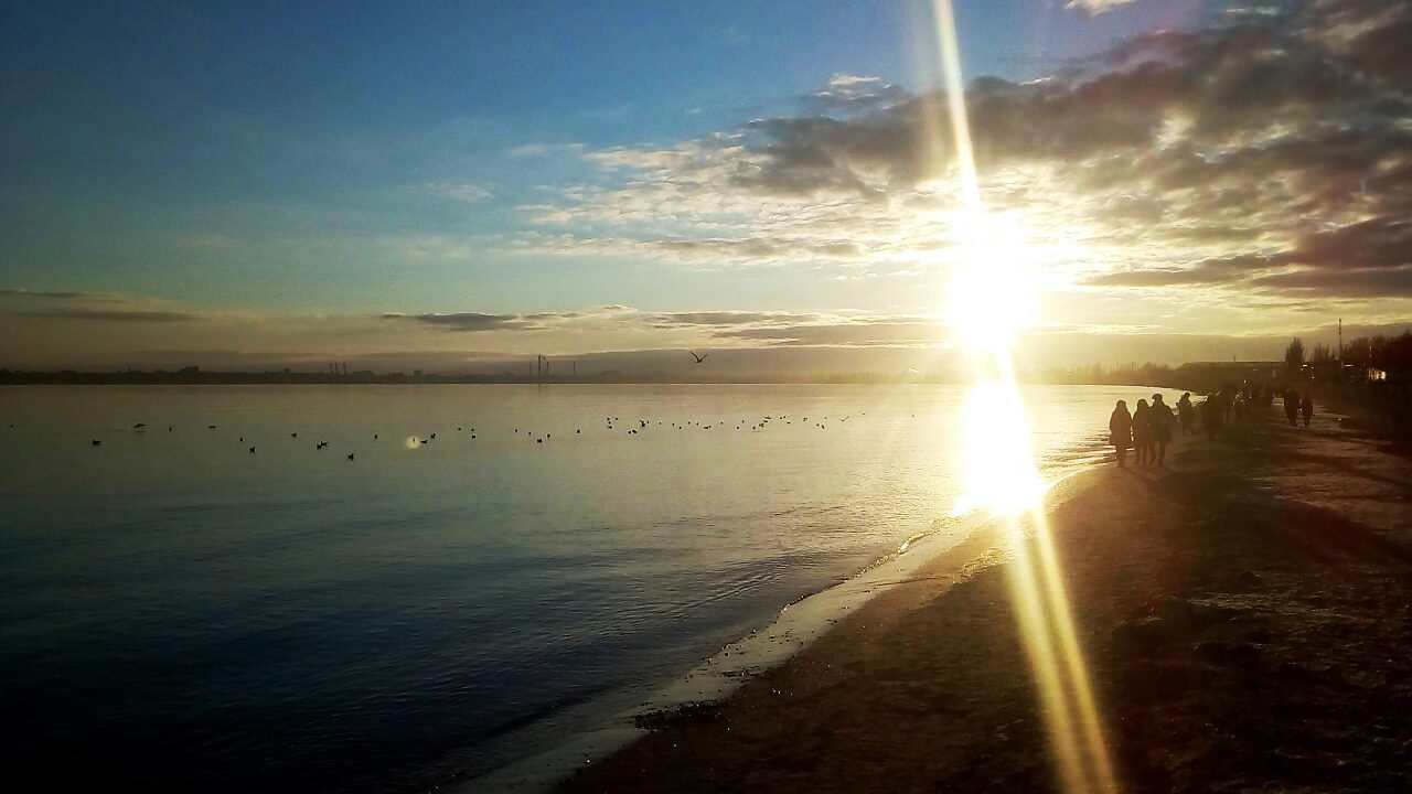 Лузановка перед закатом. Прям весна. Штиль, чайки за выходные не наелись, продолжают слетаться стаями на поесть батончика. Солнце, облака, все побережье в гуляющих. По календарю еще месяца полтора до весны, а по погоде уже чувствуется, самое страшное позади))