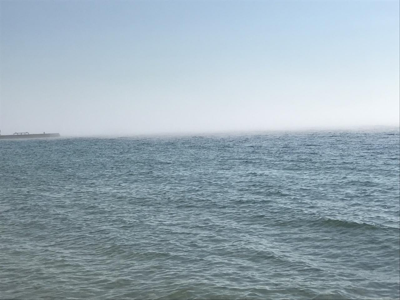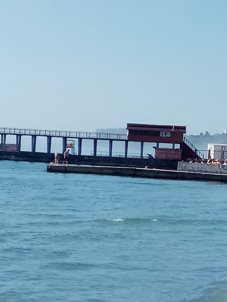 На море красиво! Волнорез в дымке! Вода чистая,холодная,но я купалась,правда не обычные полчаса,а минут 10,пока пальцы не начало сводить! Зато такой эффект,никакой душ Шарко и обертывания,не даст.