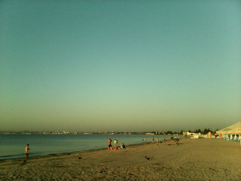 Поповка, 16-00 - 20.00. Водичка прекрасная. Красивая, спокойная. Отдельные листики водорослей. Корнеротов не встретили, хотя отдыхающие детишки кричали, что видят с пирса медузу. Хотели еще задержаться, но дым шашлычников ( а их сегодня было ну очень много) стелился над землей, создавал дымку и мешал дышать морским воздухом.