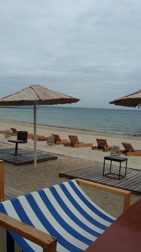 Пляжи пустые, иногда прогуливаются люди в куртках, и чаще встречаются вороны.... Вода прекрасного перецветия и теплая по ощущениям.