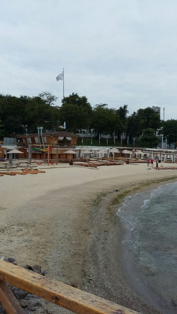 доброго утра и доброго дня всем 6:26 кабельный, волн нет, мизерный ветер, температура воды градусов 17(очень приблизительно) измерял рукой, потелепал децал в воде, вроде такая же как и вчера, вода теплее воздуха, море не вернулось на место, плиты в некоторых местах сухие