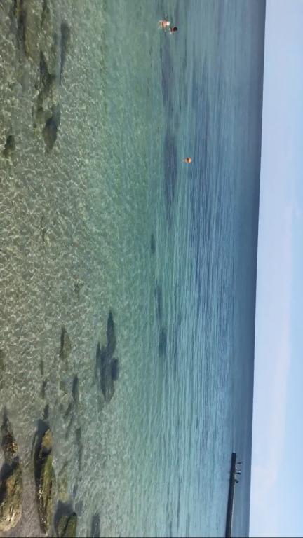 Людей намного меньше чем вчера. Но вчера и погода была более располагающая к походу на море) Пока пасмурно, лёгкий ветерок и небольшие волны, вода чистая, градусов 18-19)