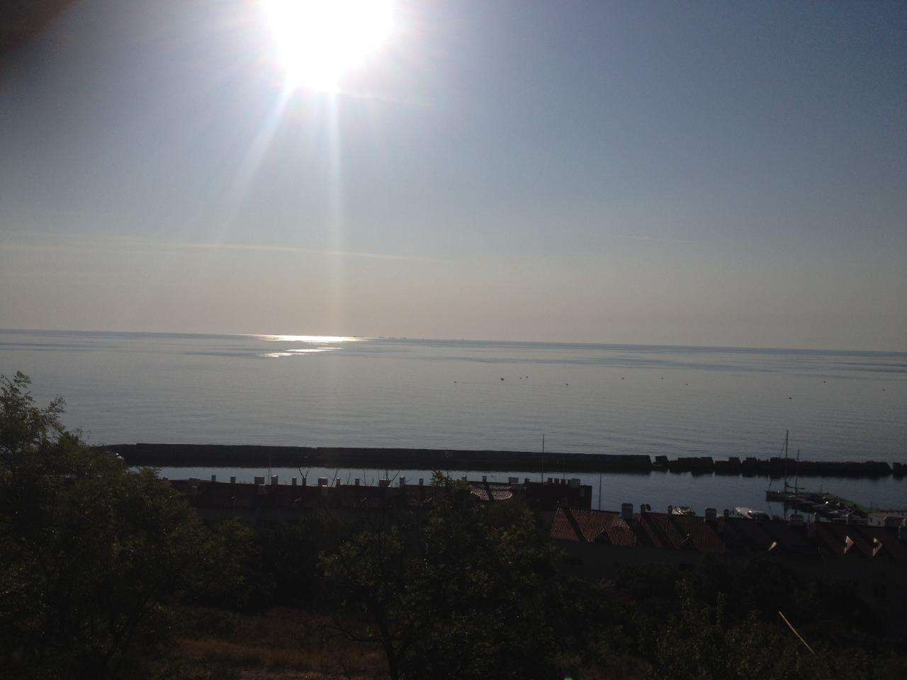 Продмаш после часа дня. Море было сегодня на редкость красивого цвета. Полосами от темно-синего до зеленого и бирюзового цвета. Волны средние. Вода теплая, мутная и на глубине не дремлют медузы (пришлось телепаться по пояс). Солнце было за тучами в то время когда весь город купался в его лучах. Когда уходила в районе 16.00 тучи разошлись и солнышко вышло и стало жарко. Купающихся очень много. Впрочем, как и людей на пляже как для рабочего дня. Наблюдала любопытную чудачку. У самой кромки моря она стояла широко расставив руки-ноги и пыталась словить солнышко. И, почему-то, крестилась на него периодически то правой то, даже, левой рукой (но левой выходило коряво) ))) То ли от избытка чувств, то ли от выпитого, то ли прощения просила за получаемый кайф )))