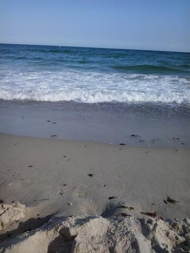На 8-ой в 17:00 волны. Вода градусов 20. Достаточно прозрачная, несмотря на волнение. Медуз смыло волнами)...