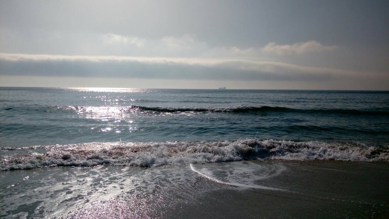 На море совсем малюсенькие волны, вода полупрозрачная и солёная.