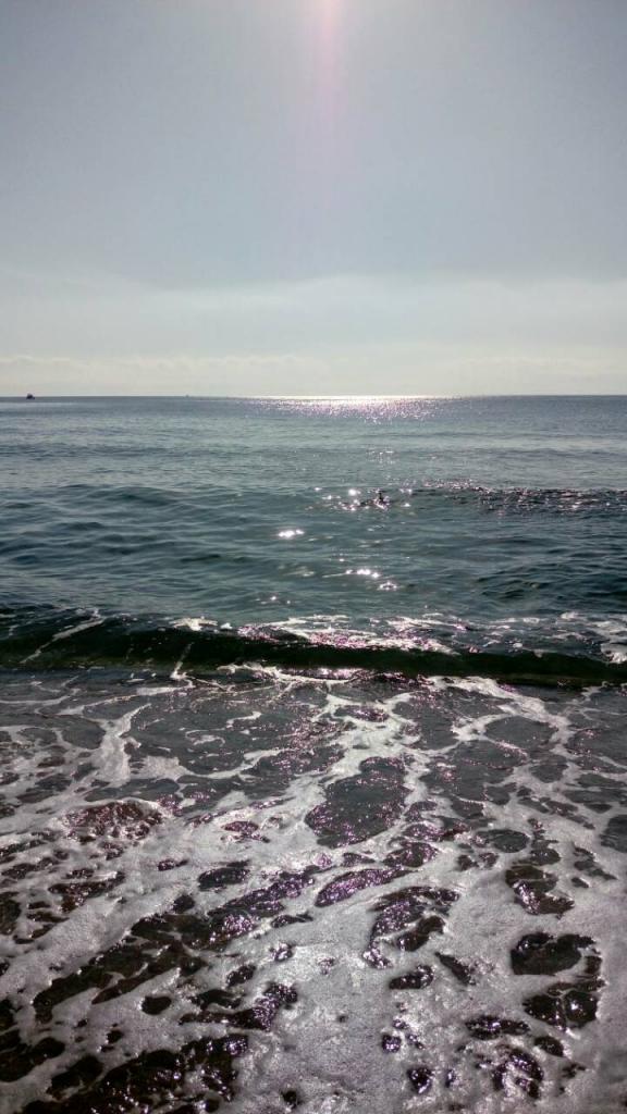 После обеда ооочень грязная вода, мутнаяя, мусор и непонятного вида бульки, налет, бумажки, фантик от сникерса. Даже не смотря на такое количество рыбаков в море, не верится, что столько мусора и прочих нечистот после них к берегу принесло .