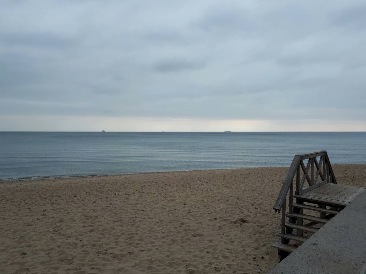 Таки да, море прилично отошло от берега. Но зато спокойноее. Вода уже 13 градусов, по состоянию на 7.30 утра в Лузановке. Присутствует противный холодный ветер.