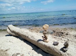 На море мелкие волны, иногда с барашками, вода прозрачная и солёная.