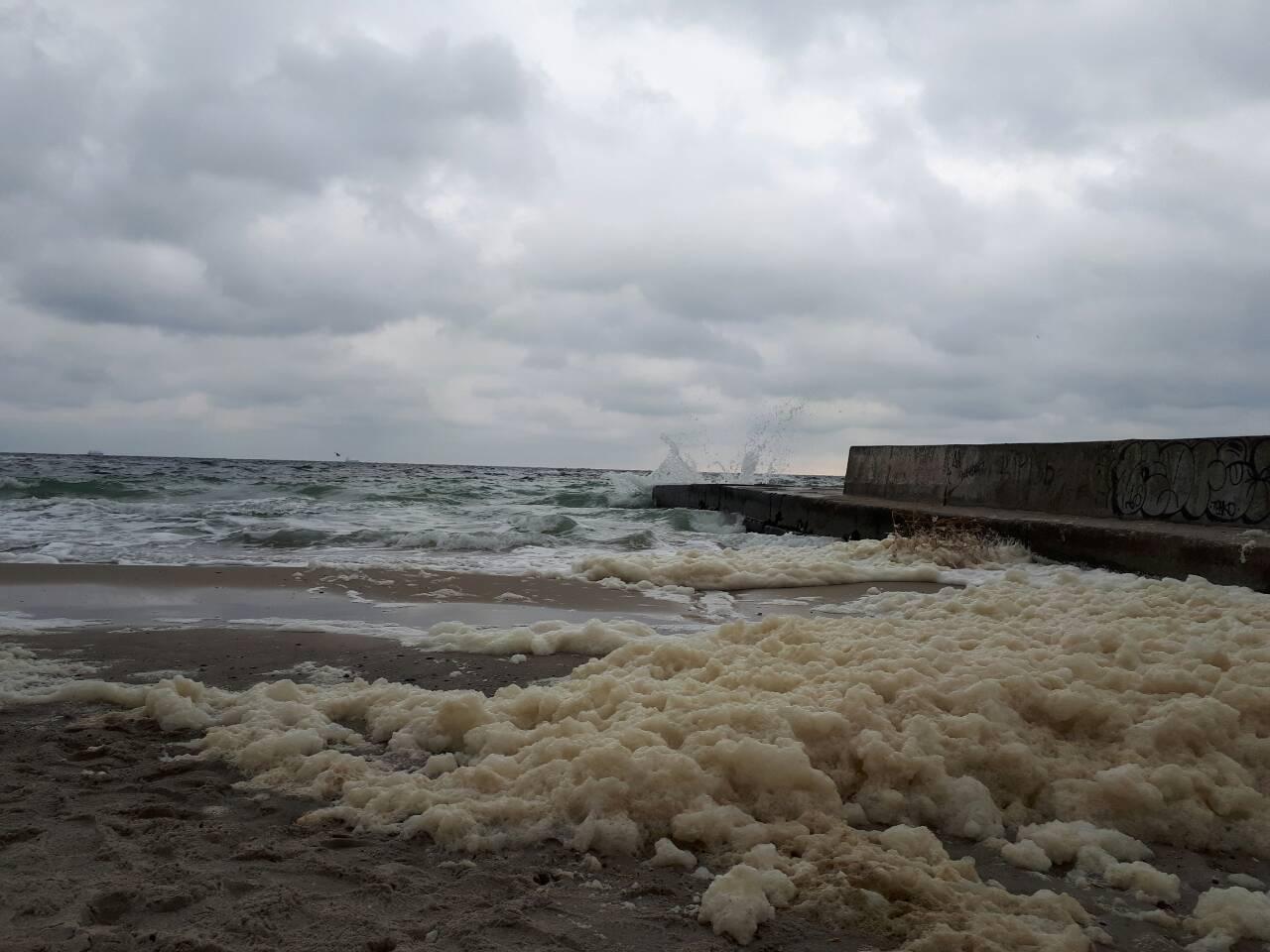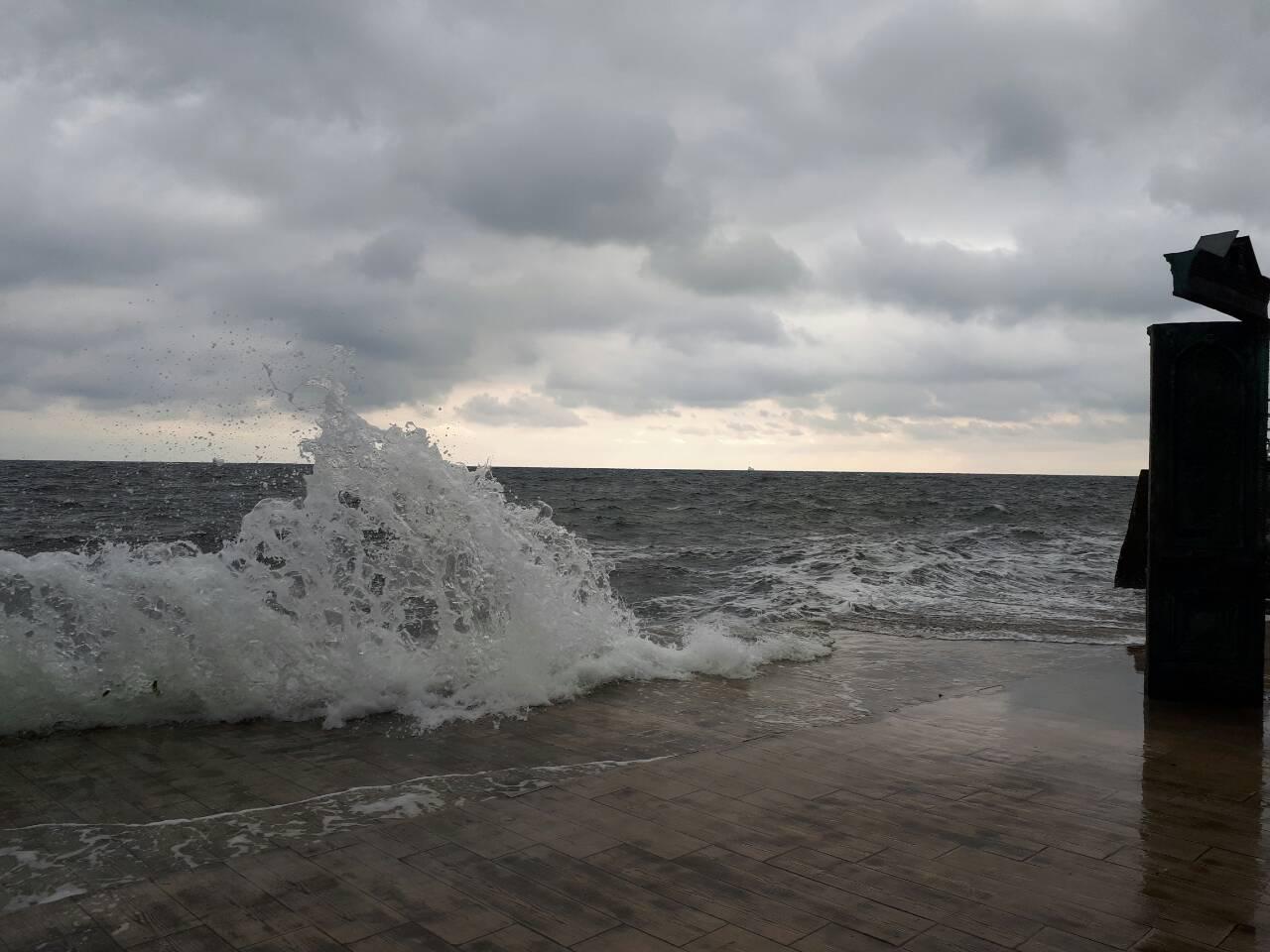 Сперва фото, теперь окунулся и про воду скажу. Температура 13, шторм приличный, но ветер средний. Вдалеке среди волн замечен пловец плывущий вдоль берега со стороны Молодой в сторону Сортировочной.
