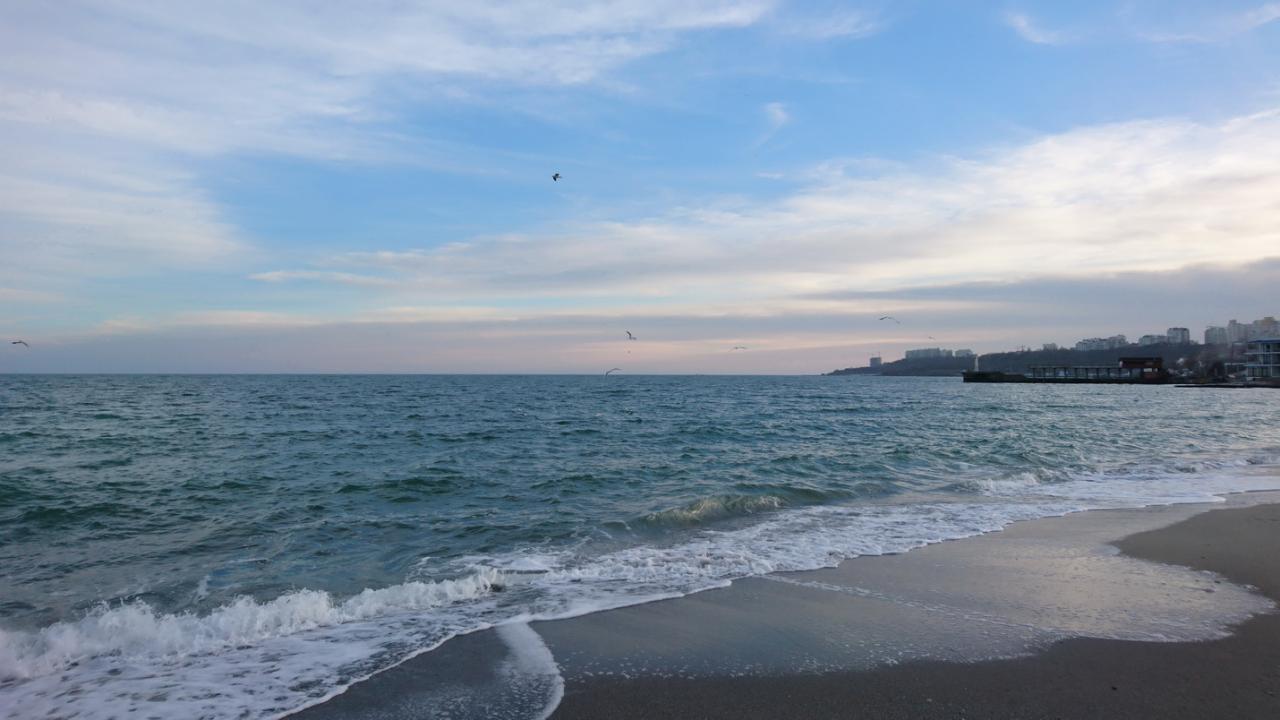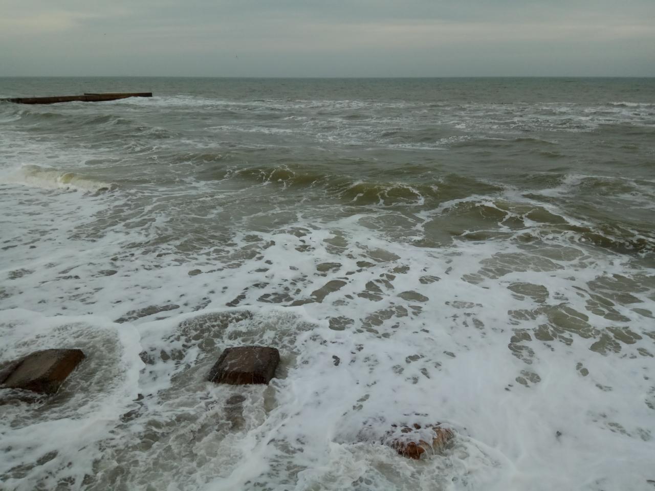 Кабельний, 7.30. Похмуро, вітер західний, море абсолютно спокійне. Повітря -1, вода +6 градусів за Цельсієм.