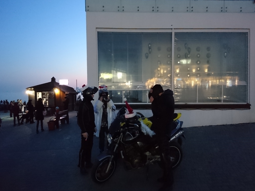 А вчера в предзакатное время на побережье гуляли Дедушки Морозы, кикиморы, скоморохи и прочие сказочные персонажи. Некоторые принявшие на грудь лишнего возомнили себя бессмертными или хранителями запасных жизней, и рвались осуществить заплыв. Может, конечно, приближающееся полнолуние повлияло. Впрочем, царили расслабленность, веселье и доброжелательность.