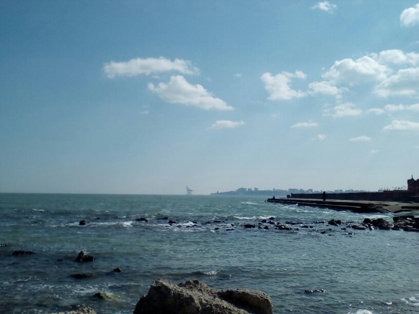 Море почти спокойное, не считая мелких волн, вода полупрозрачная и солёная.