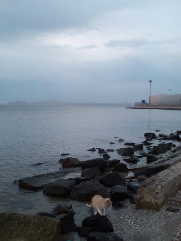 Кабельний, 6.30. Похмуро, сонце лише на декілька хвилин показалося поміж хмарами. Невеличкий північно-західний вітерець, море абсолютно спокійне, вода прозора як сльоза немовляти. Повітря 11, вода 9.