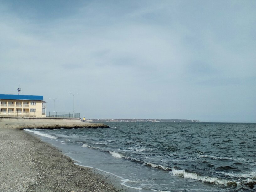Кабельний, 7.30. Майже ясно, вітру майже немає, море майже спокійне, водичка прозора як сльоза. Повітря та вода по 12 градусів з позначкою плюс.