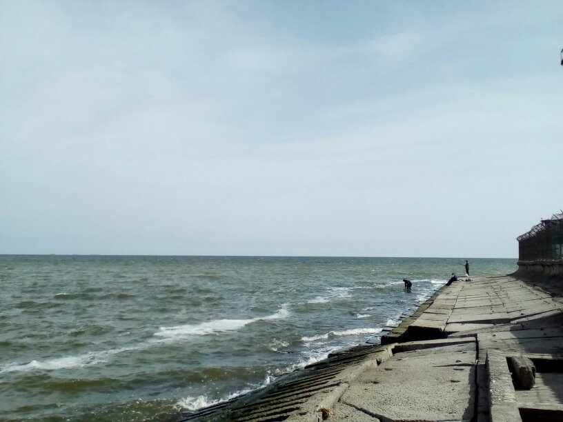 Кабельний, 7.30. Малохмарно, досить потужний північний або північно-західний вітер, море спокійне, вода зовсім прозора. Повітря 11, вода 5 (так-так, вітер таки відігнав теплу воду від берега).