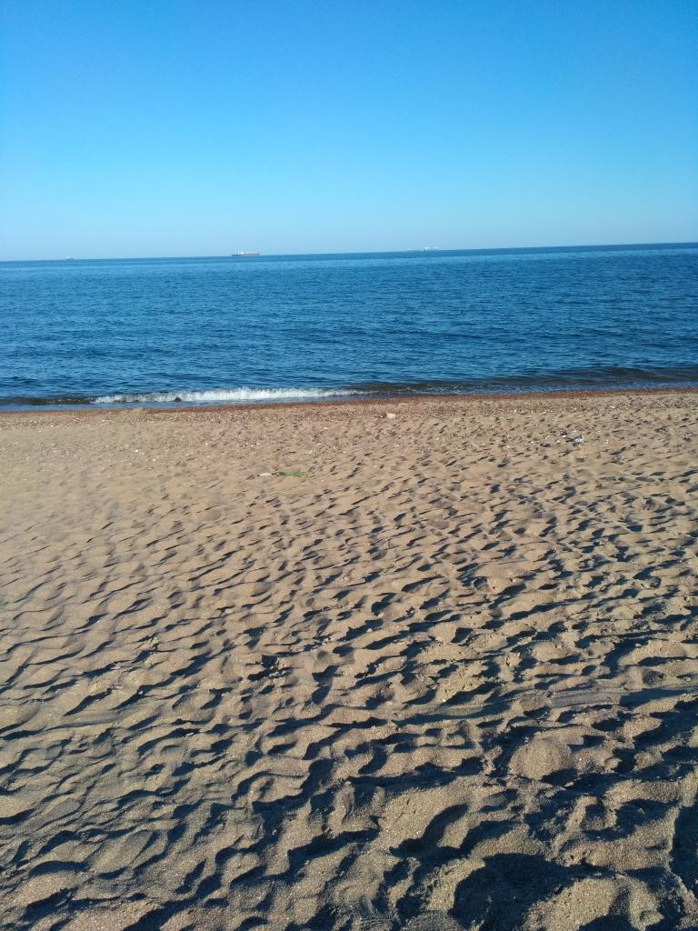 Вода, приятная, но не купалась, песочек теплый, небо, такое голубое, просто нереальная бирюза, так тепло и красиво, а ветерочек -легкий и прохладный очень кайфово на море))))