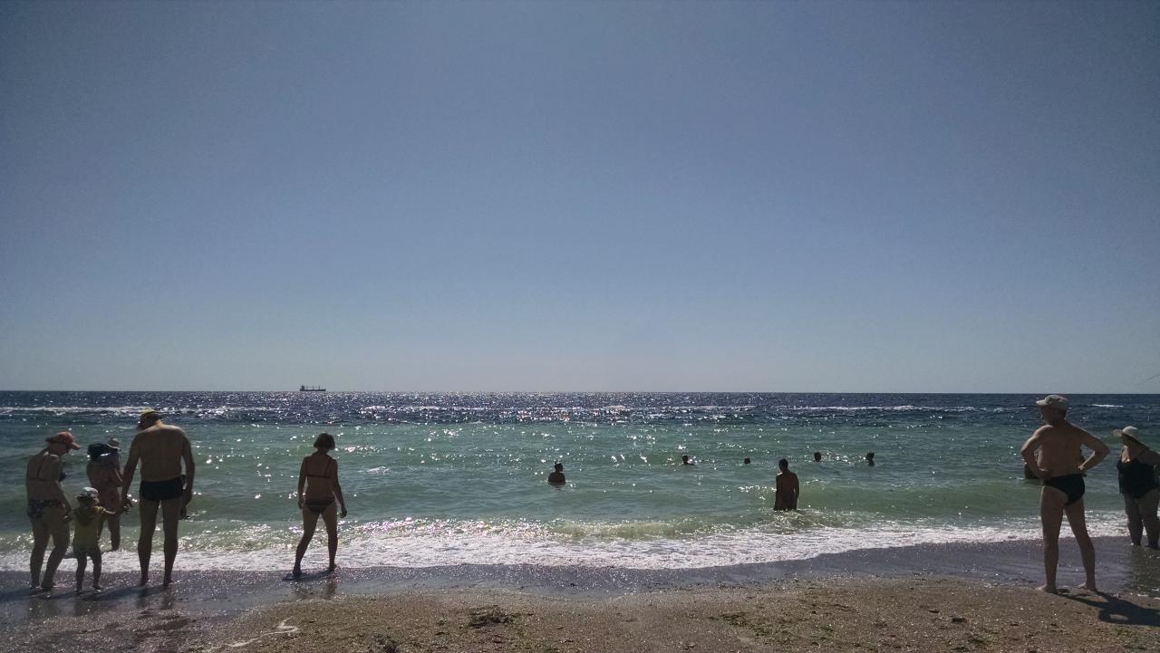 Хорошее море сегодня. Заходить и выходить холодно из-за прохладного воздуха. Но купаться сплошное удовольствие. На 16 й пляж уже заставили шезлонгами- маленький кецик без шезлонгов возле пирса, там-то все и толпятся. Прошлись пешком до 12-й , на каждом пляже вода разного цвета, от бурого из-за водорослей до лазурного. Красотища. А. Ещё на 16-й новая услуга) стоит девочка с двумя аквариумами с рыбками и предлагает педикюр рыбный) 100 грн за 10 мин)