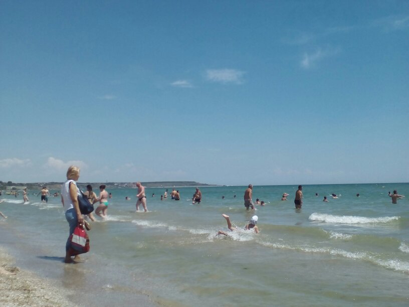 В Черноморке после обеда солнышко,ветерок прохладный.Водичка чистая,около 20. Я поплавала около 20 минут.Людей мало.
