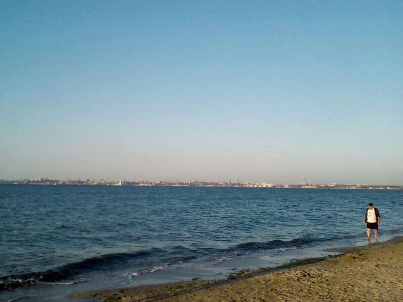Вечер на поповском пляже, воду даже не трогал, купающихся вроде и не было, люди зачем-то стоят с удочками, хоть бы кто вытащил рыбу из моря.