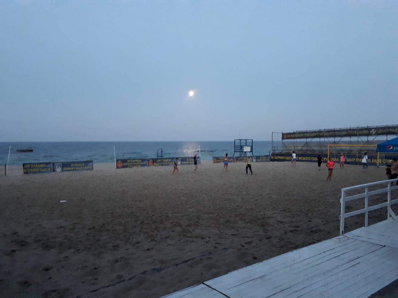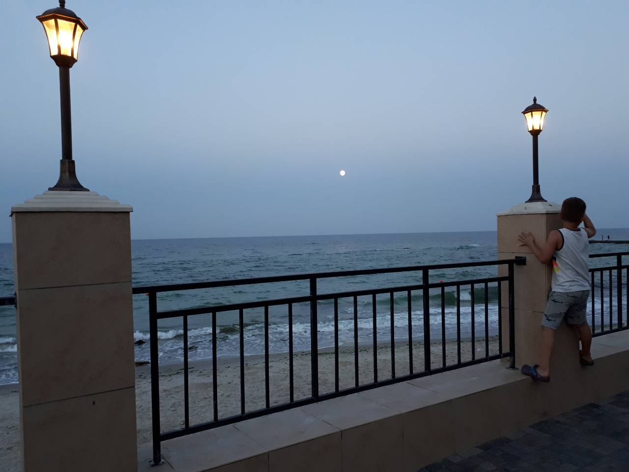 Вечером между 13 и 16ст. Фонтана. Песок влажный, вода тёплая, в основном с водорослями ближе к 16-ой ст. Уже видно, что завтра полнолуние.